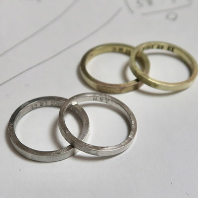 (練習用シルバー、真鍮リング:同デザイン 同仕上げ)