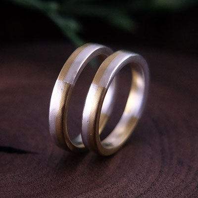 1/2幅上下でプラチナ&18KPG、半周で上下逆のコンビリング、ハーフマット仕上げ