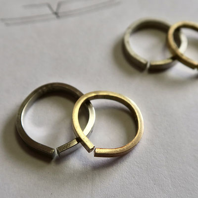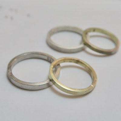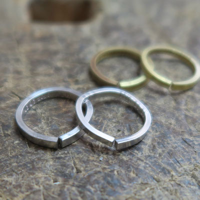 (練習用シルバー&真鍮リング:同デザイン 同仕上げ)